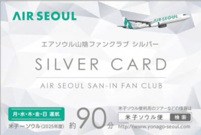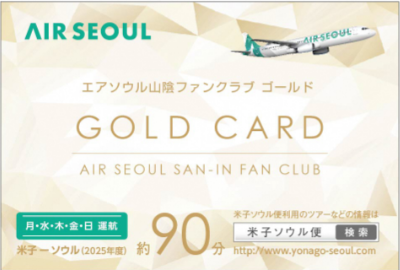 【概要】 12月23日(火)のデイリー運航以降、新たに就航する曜日(火・木・土)の米子発便に搭乗した際、エアソウル山陰ファンクラブポイントが2倍となります。